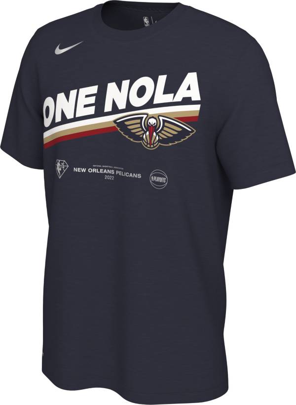 Nike Men S New Orleans Pelicans One Nola Navy 2022 Nba Playoffs Mantra T Shirt Dick S Sporting Goods