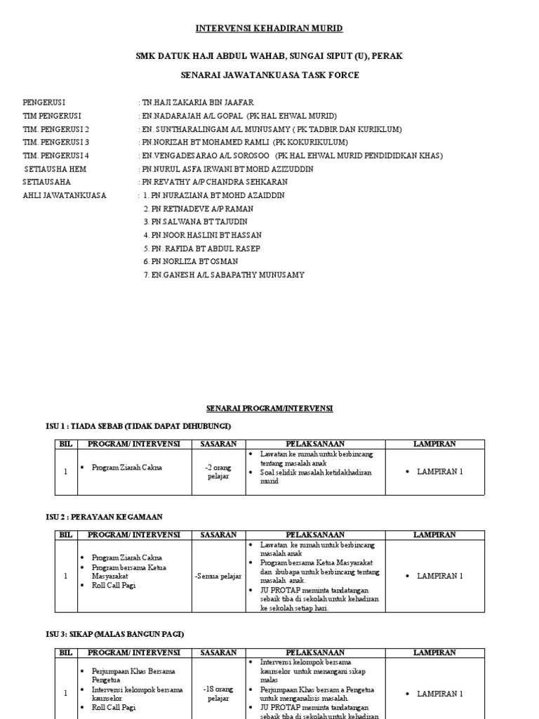Intervensi Kehadiran Pelajar Pdf